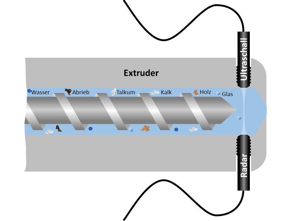 Während metallische Fremdmaterialien oftmals noch durch Metalldetektoren erfasst werden können, bleiben nichtmetallische Fremdpartikel gänzlich unentdeckt. Genau hier können die am SKZ eingesetzten ultraschall- und radargestützte Prüfverfahren zum Einsatz kommen: Neben Metallen reagieren die ultraschall- und radartechnolgischen Prüfsysteme auch auf alle anderen anorganischen Materialien, wie Glas, Karton, Holz und Stein. Auch nicht sortenreine Kunststoffe und abgebaute Materialien können je nach Anwendungsfall erkannt werden. Im Gegensatz zu herkömmlichen Siebeinsätzen wird dabei der Extrusionsprozess durch den Einsatz der neuartigen Sensoren nicht beeinflusst.